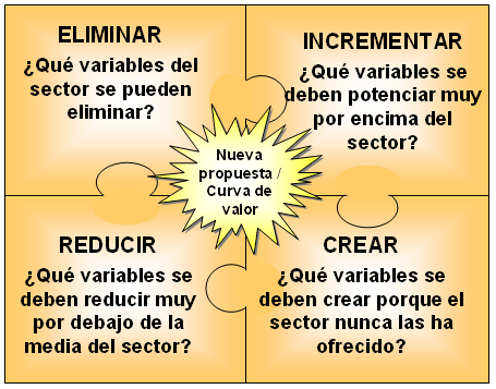 Esquema de las 4 acciones; elimininar – reducir – incrementar – crear