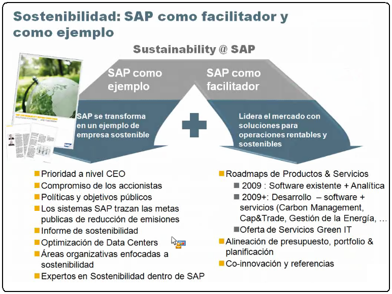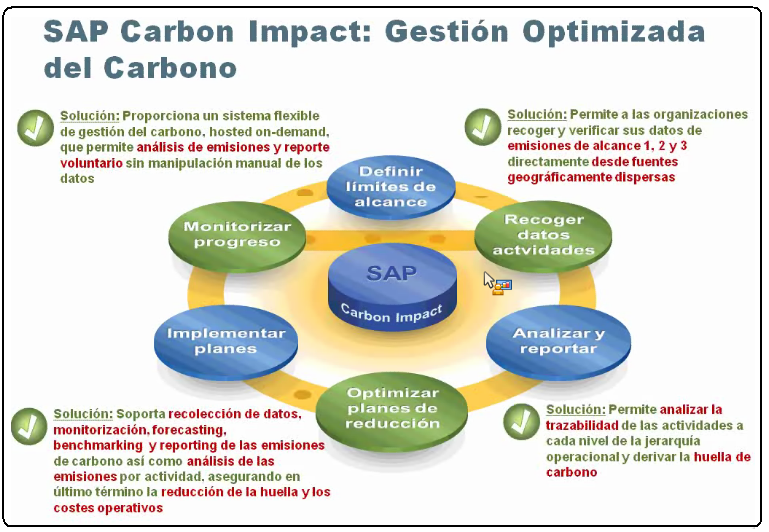 Las soluciones de sostenibilidad de SAP se basan en la serie de productos que ya contaba SAP, herramientas analíticas y las adquisiciones que se han venido realizando en los últimos años.