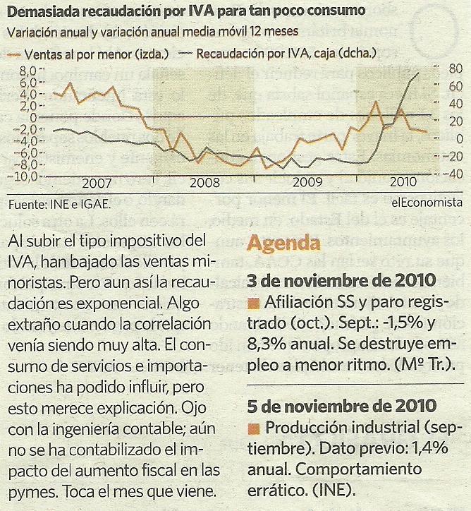 Imagen anterior Imagen siguiente Indicadores Economicos Semana 2010-44 – IVA más alto, menos consumo, pero mayor recaudación