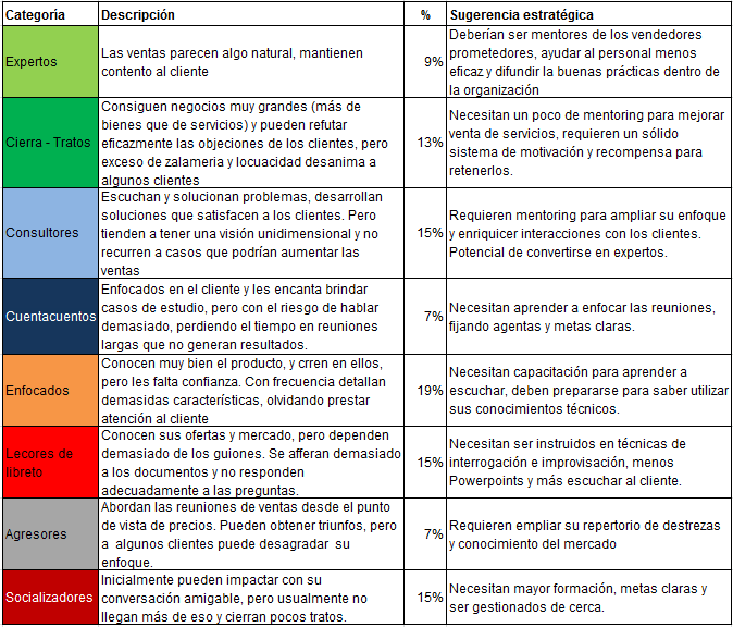 Algunos vendedores tienen cualidades innatas, hemos tenido la oportunidad de conocer algunos muy buenos y otros no tanto. Un estudio de la HBR identifica hasta 8 categorías analizando las siguientes destrezas, relacionadas con el éxito de las ventas:
