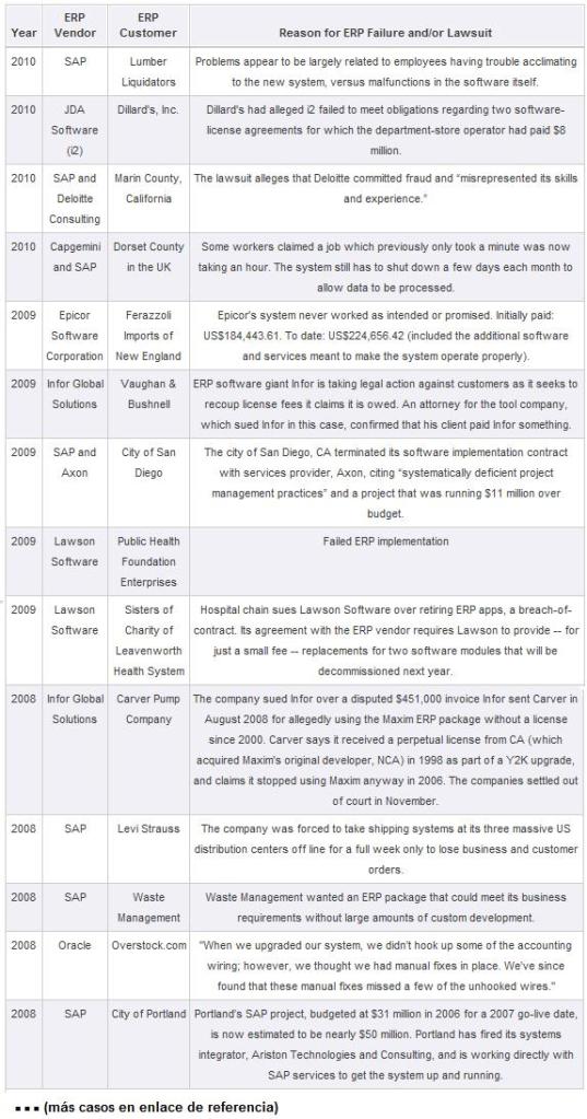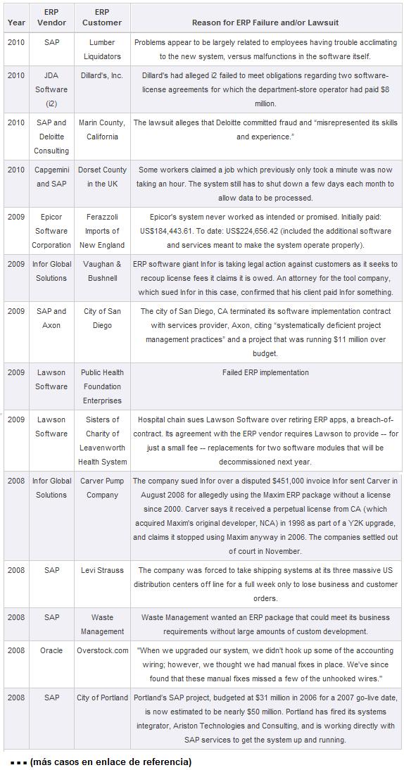 Casos de no-éxito de implementación de ERPs que se convirtieron en demandas judiciales