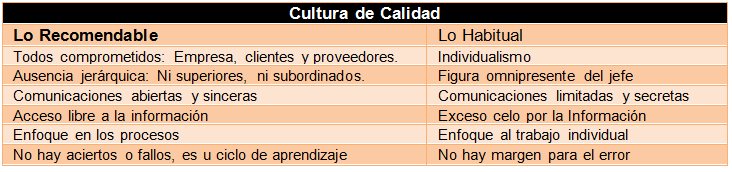 Cultura Organizacional de Calidad; Compromiso, Comunicación, Información, Procesos y Aprendizaje