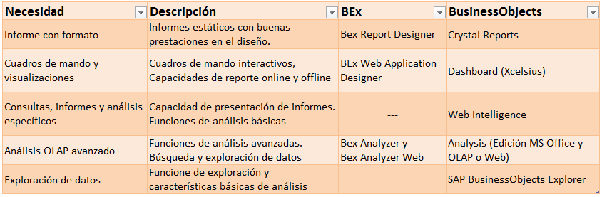 Por mejores prestaciones y facilidad de uso, en la capa de visualización de la información, la mejor opción es SAP BusinessObjects