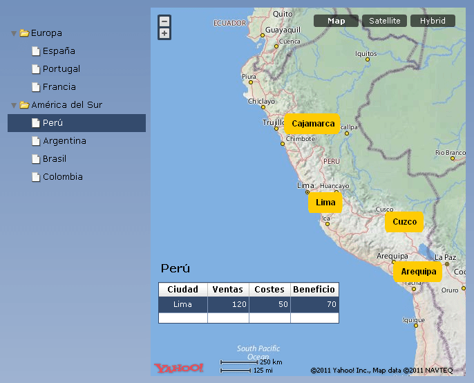 Xcomponents, basada en Yahoo Maps, para Xcelsius, una alternativa gratis
