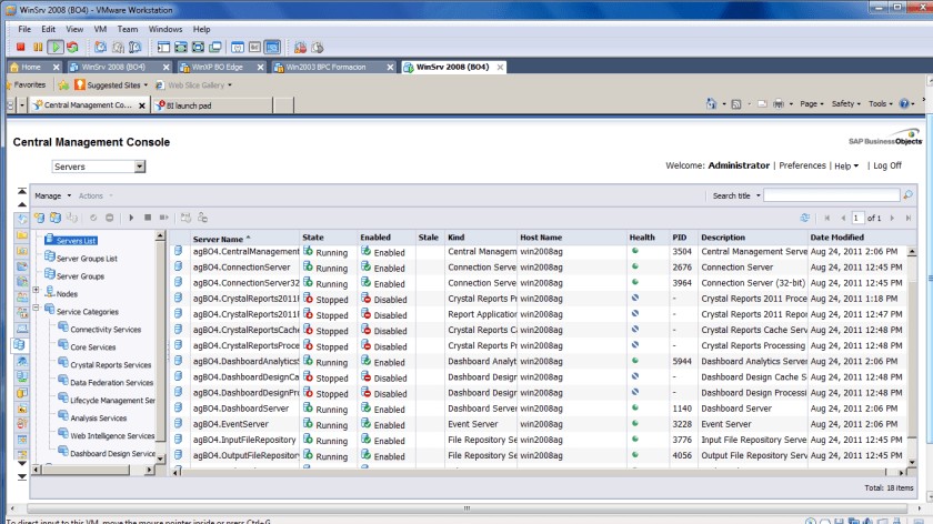 Imagen anterior Imagen siguiente SAP BO 4.0 – Servicioss (Servidores BO) que hemos deshabilitado temporalmente en el CMC para evitar ralentización del sistema operativo