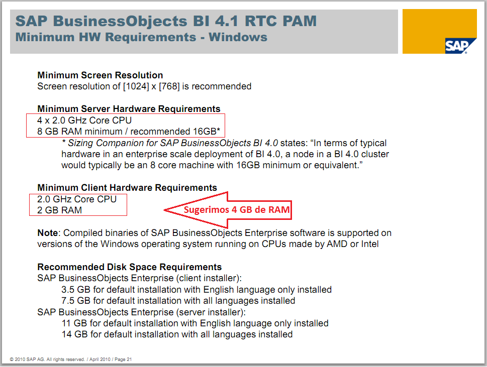SAP BusinessObjects BI 4.1 – Requerimientos mínimos
