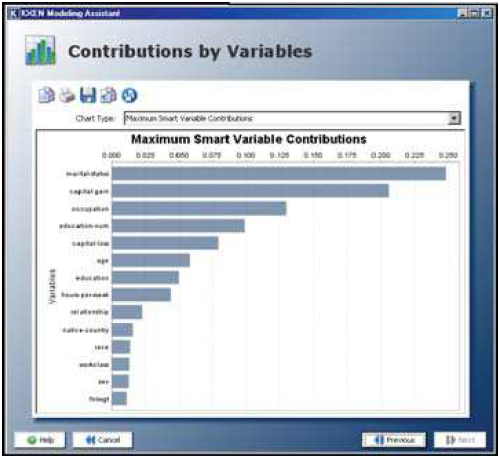 KXEN, análisis de la contribución de las variables predicitivas al modelo