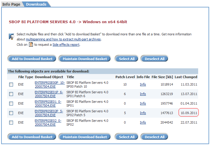 SAP BO BI 4.0 – SP02 Patch 5, al 16 de septiembre de 2011, la última versión