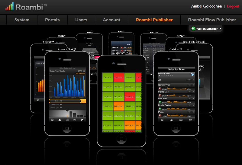 Imagen anterior Imagen siguiente Views, vistas o plantillas, característica principal de Roambi Analytics, a través de las cuales se hace el despligue de las visualizaciones que requieren los usuarios para analizar la inforación