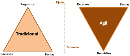 Un enfoque tradicional de un proyecto, propone fijar los requisitos con un alto nivel de detalle al inicio del proyecto y a partir de ellos, se hace una estimación del coste y de la fecha de entrega del mismo.  Los métodos ágiles parten de un presupuesto y unas fechas de entrega y a partir de ahí se trabaja para implementar la funcionalidad, de este modo se logra un alcance flexible.