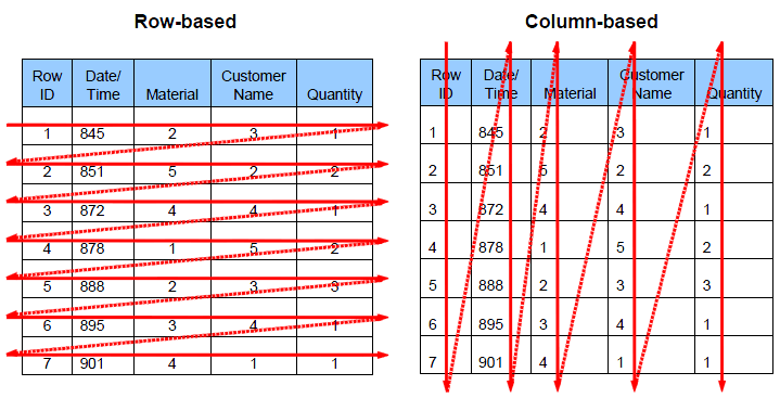 Almacenamiento en columnas y almacenamiento en filas