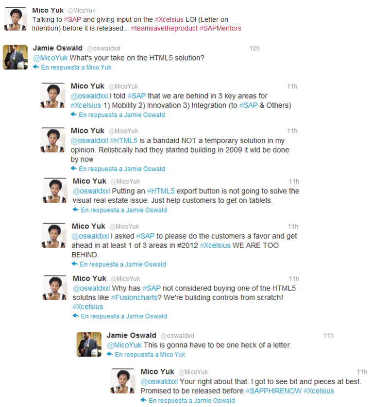 Un dialogo interesante en Twitter sobre el futuro de Xcelsius. Mico Yuk es el principal referente de SAP para SAP Dashboard Design (Xcelsius)