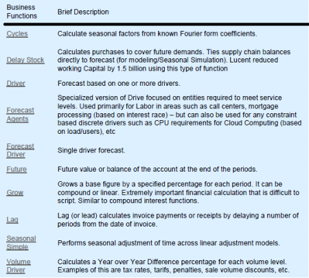 - Business Function Library (BFL): Contiene funciones asociadas a los procesos de negocio como el cálculo de la depreciación, cálculos interanuales, capacidad de optimización, entre otros.