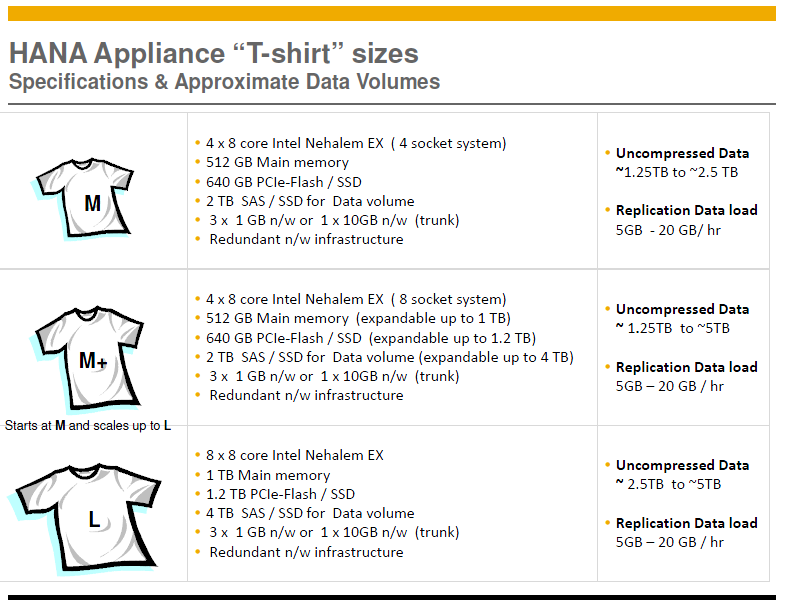 Imagen anterior Imagen siguiente HANA Appliance T-shirt sizes – Specifications – Approximate Data Volumes (P2)