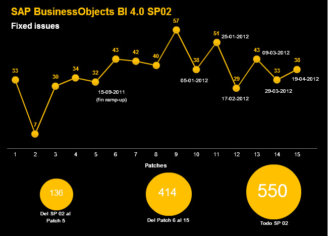 SAP BusinessObjects BI 4.0 SP02, evolución de números de errores corregidos desde el Patch 01 al Patch 15 (19 de abril 2012)
