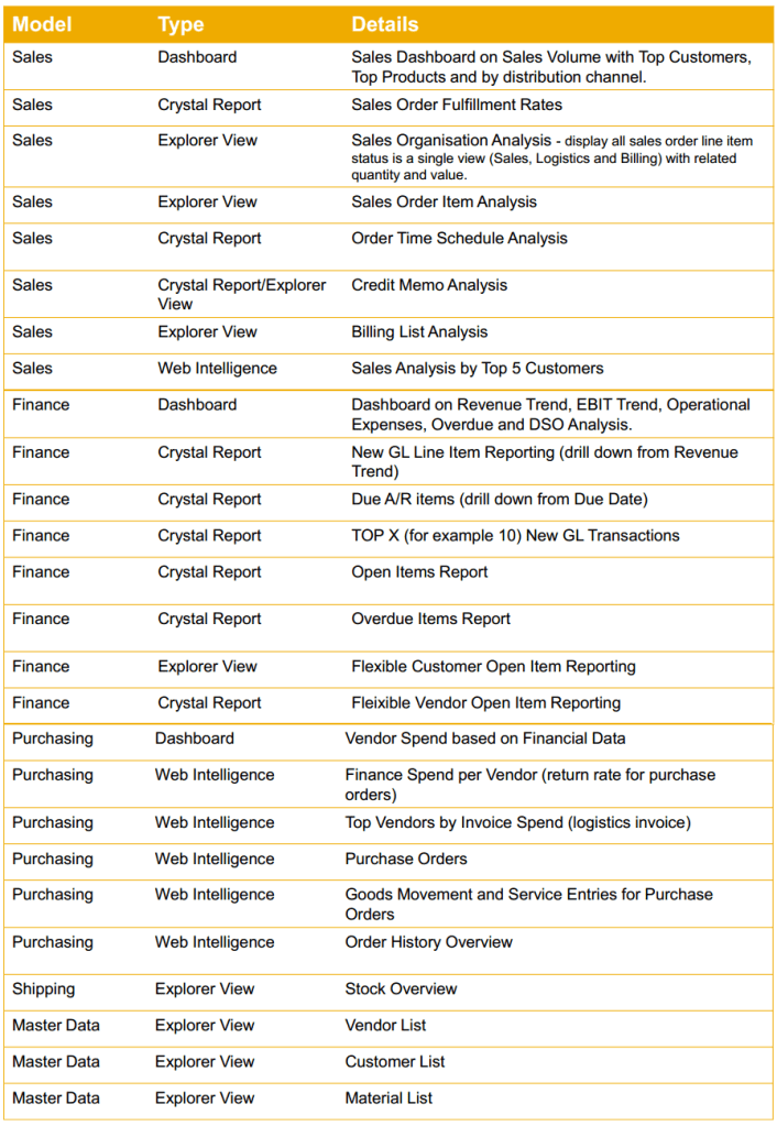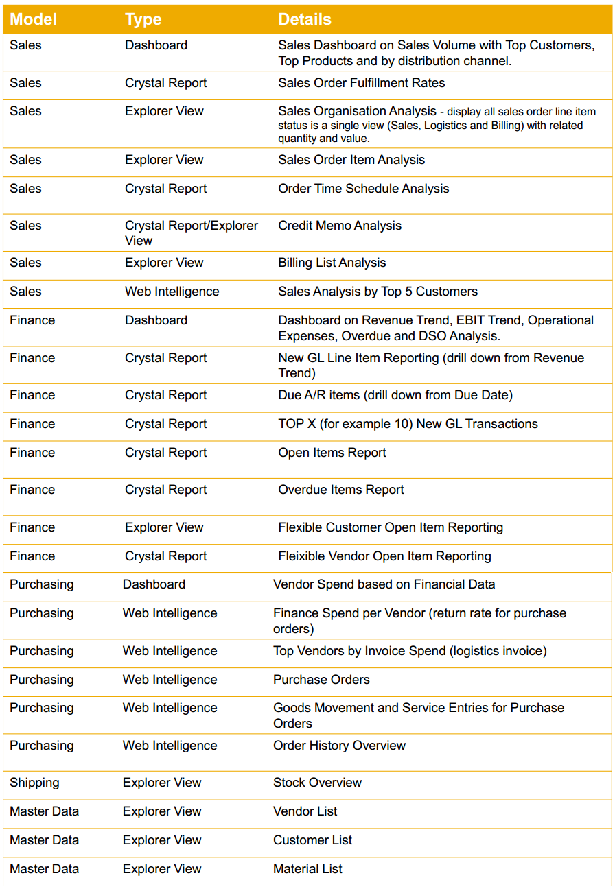 SAP ERP RDS for operational reporting with SAP HANA – Principales modelos