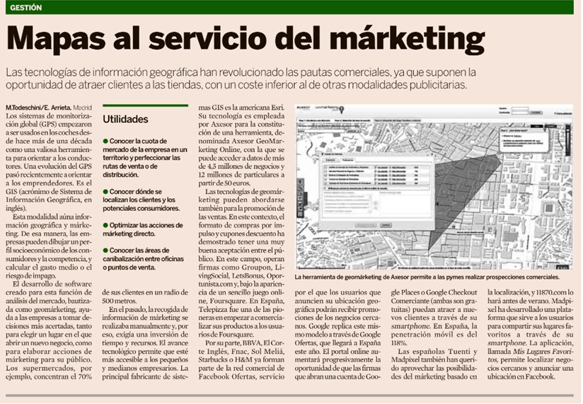 Imagen siguiente El uso más frecuente de los mapas es en las campañas de marketing. (aritulo del diario Expansión)