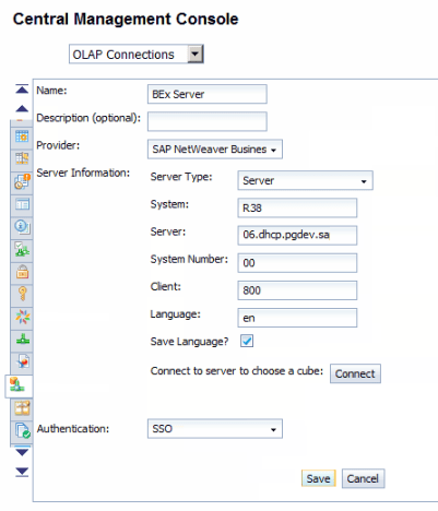 Amigo gracias por la info… tengo una pregunta.. Existe una manera de probar las conexiones OLAP mediante el CMC para una conexión BEX?..