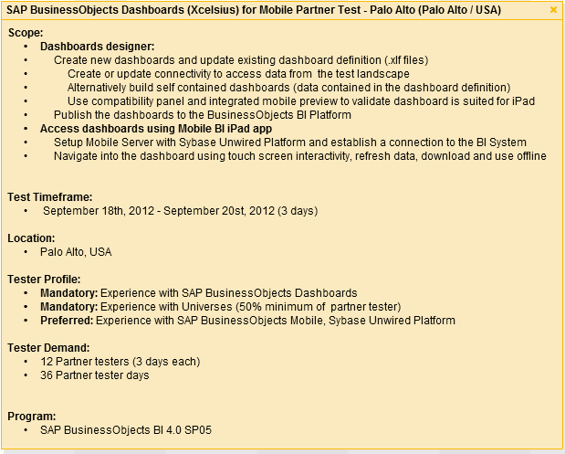 Imagen anterior Imagen siguiente SAP BusinessObjects Dashboards (Xcelsius) for Mobile Partner Test – Palo Alto (Palo Alto – USA)