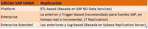 Ediciones de SAP HANA vs sistemas de replicación de datos