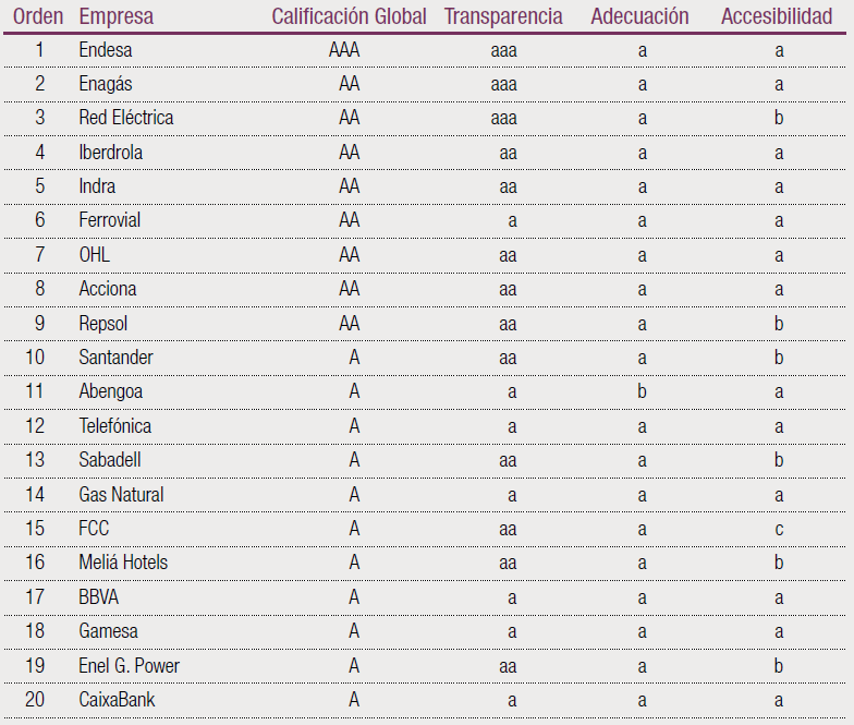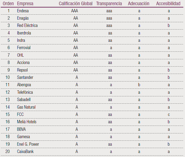 TOP 20 de las empresas según la calidad de su información para el accionista