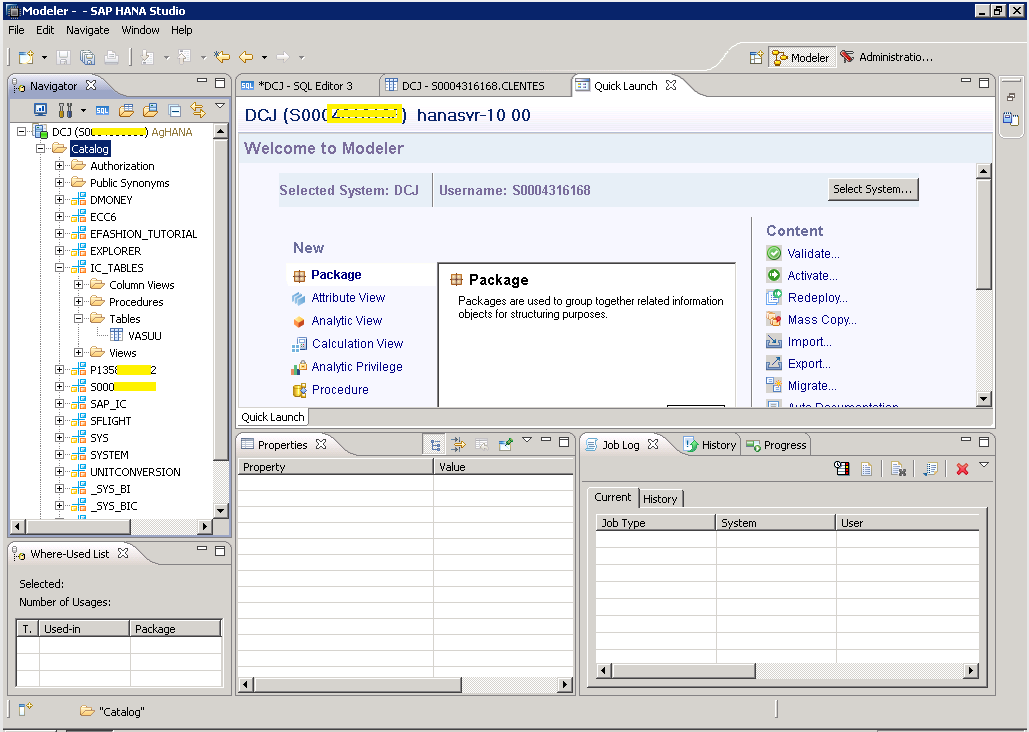 SAP HANA Studio – Conectado