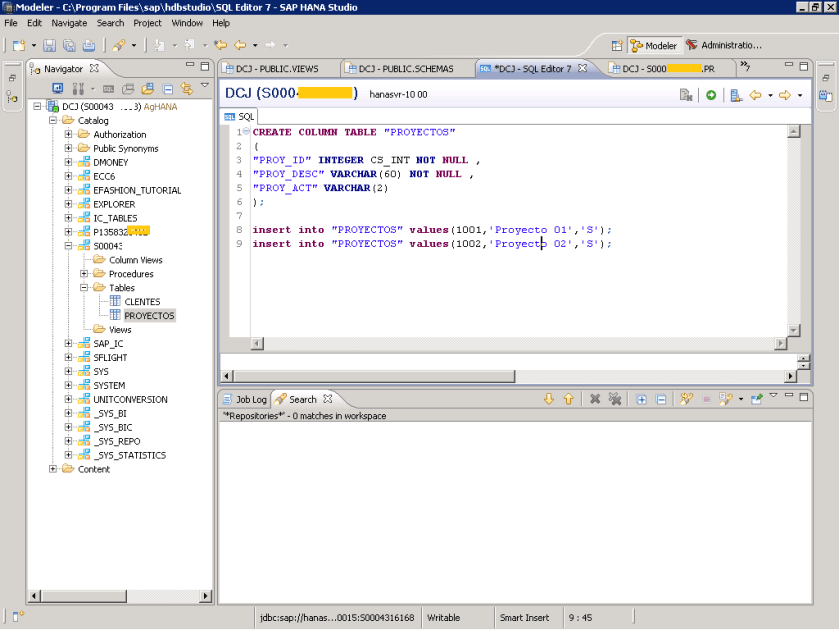 Creando tablas con SAP HANA Studio