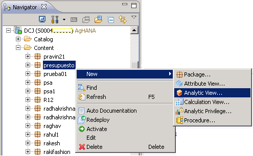 Imagen anterior Imagen siguiente Otra vía para iniciar la creación de una Analytic View – SAP HANA Studio