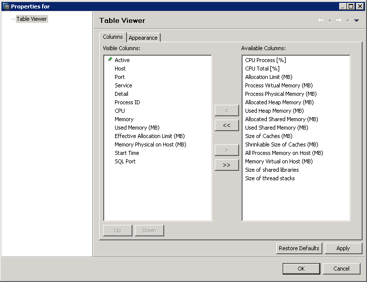 Imagen anterior Al igual que muchas otras tablas de información de SAP HANA Studio, se puede especificar que datos se desean ver