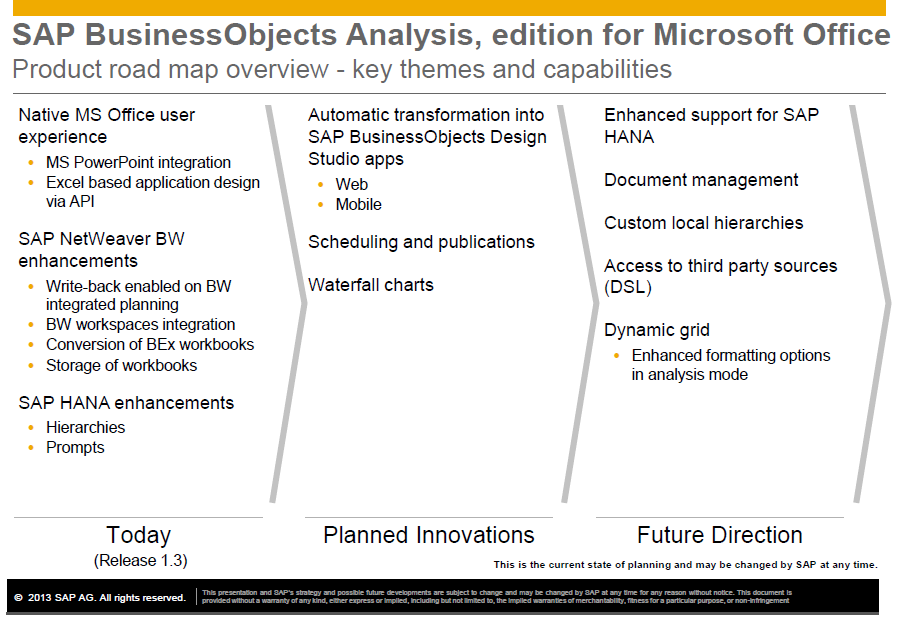 SAP Product Road Map SAP BusinessObjects Analysis, edition for Microsoft Office (Road Map Revision; January 15, 2013)