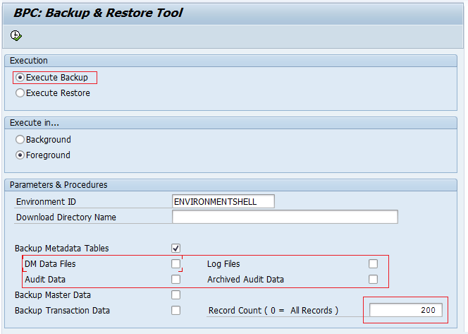 Ventana de la transacción UJBR de SAP BPC NW 7.5 SP10 y SAP BPC NW 10.0
