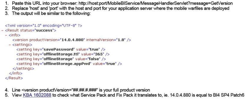 Pasos para identificar la versión del servidor mobile de SAP BI