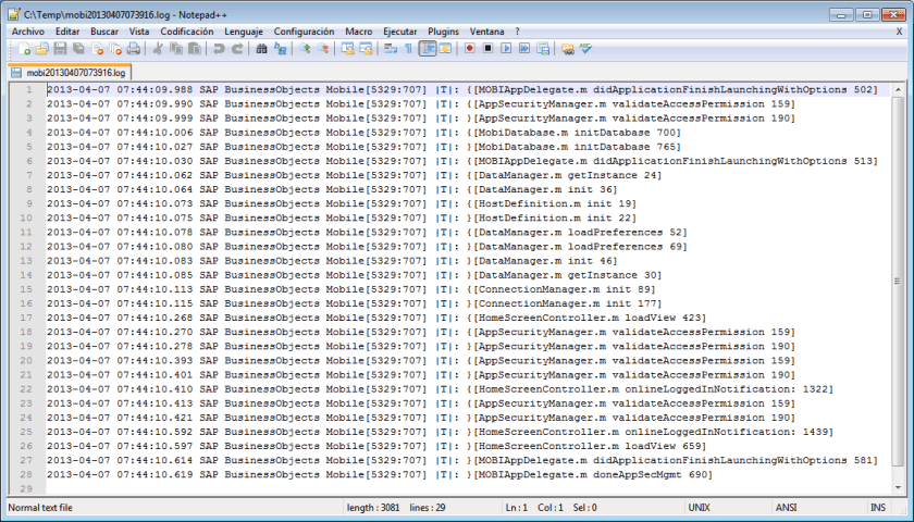 Generación y visualización del fichero log de SAP BI Mobile en dispositivos iOS
