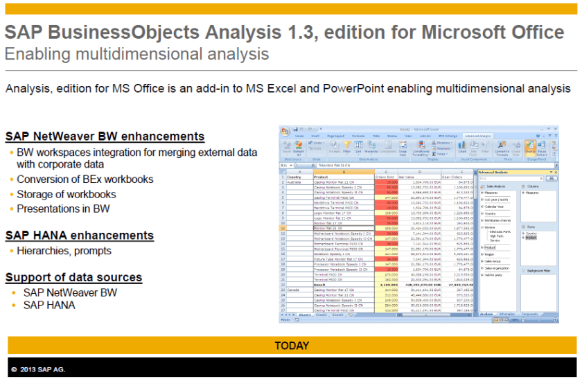 Hoja de principales características de SAP Analysis, edition for Office 1.3, la versión más actualizada hasta abril 2013