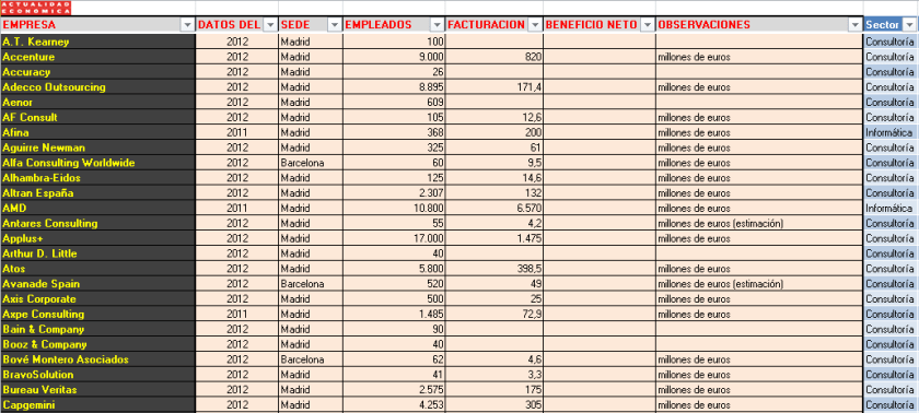 Muestra del informe Quién es Quién 2013 de la revista Actualidad Económica