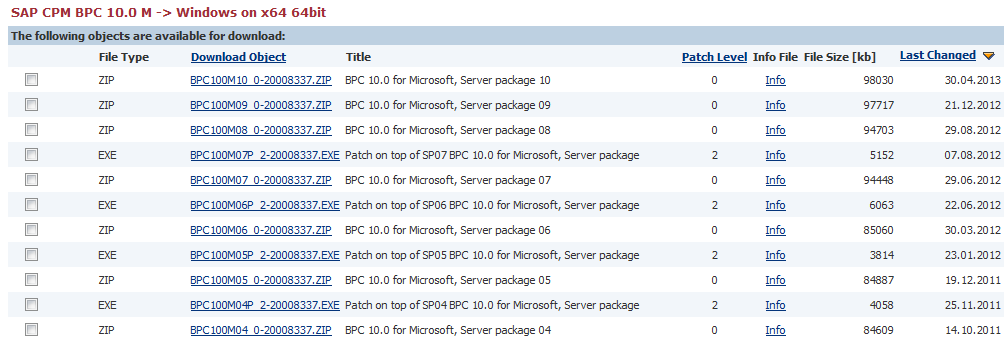 Actualizaciones de SAP BPC 10.0