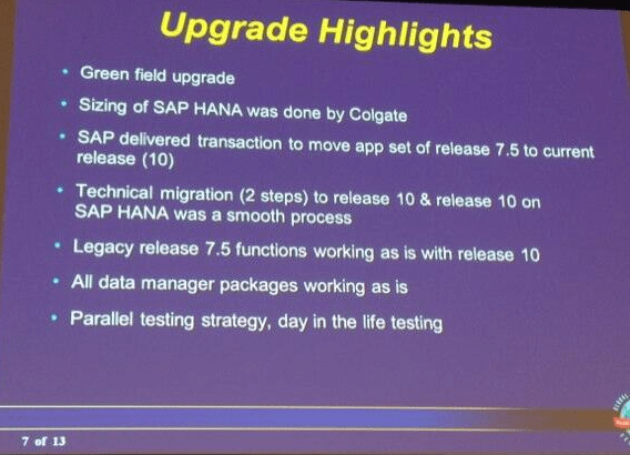 Imagen anterior Imagen siguiente SAPPHIRENOW, Colgate, Objetivos para la migración de BPC 7.5 a 10.0 (Caso Consolidación)