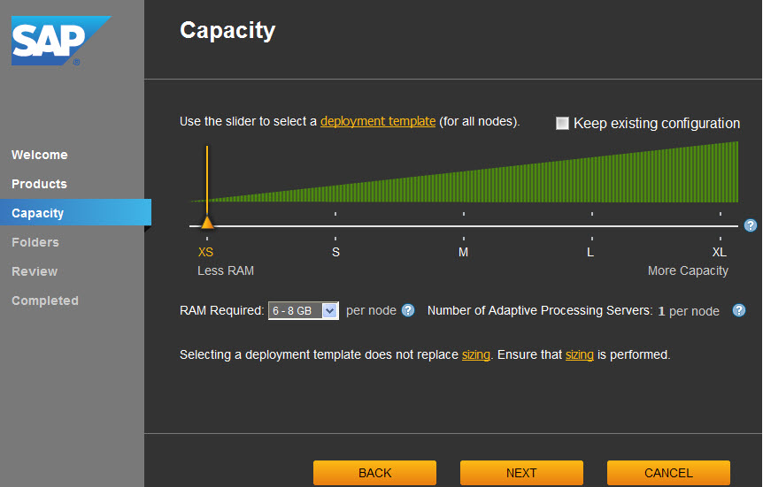Imagen anterior Imagen siguiente System Configuration Wizard, ficha Capacity,para seleccionar la plantilla de configuración del sistema