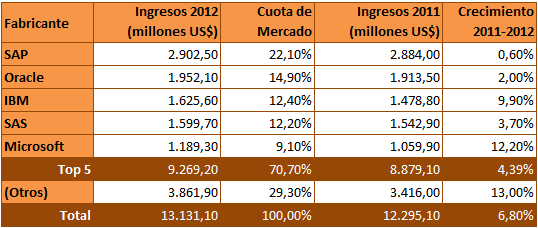 TOP 5 del BI, CPM y Analytics; SAP, Oracle, IBM, SAS y Microsoft