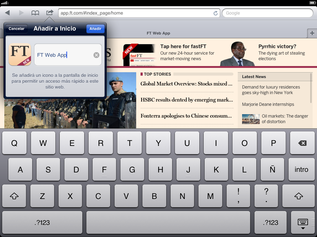 Instalando app.FT.com en la pantalla inicio del dispositivo
