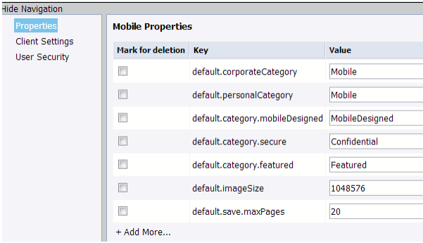 Ventana para personalizar las propiedades de SAP BO BI Mobile en el CMC del BI 4.1