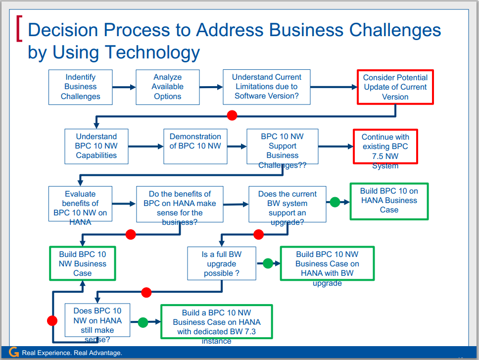 (extracto de presentación de ASUG; THINKING ABOUT UPGRADING TO BPC-EPM 10) Proceso de decisión hacia SAP BPC 10.0 – HANABPC