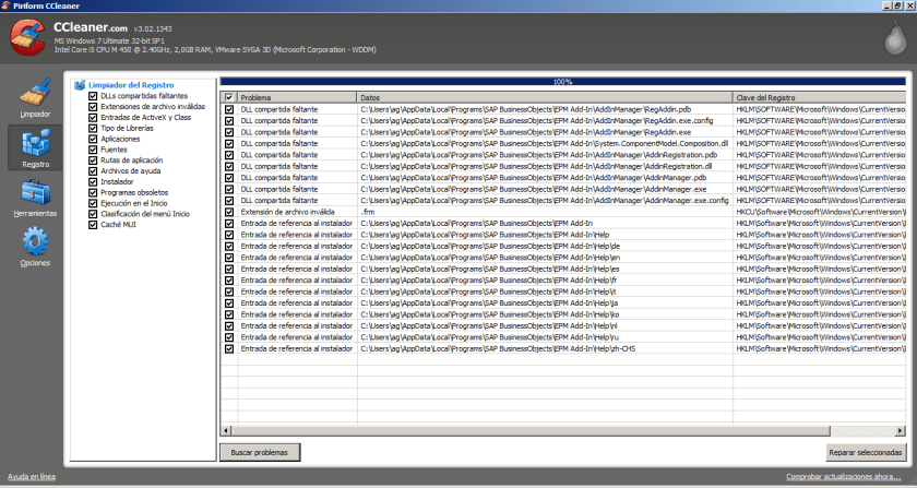 Limpiar el registro de Windows luesgo de desintalar el EPM Add-in