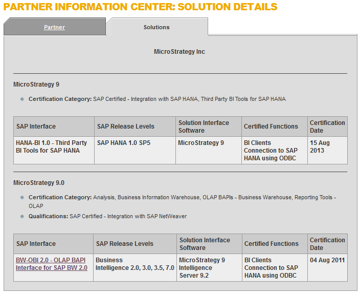Imagen anterior Ficha de la certificación de Microstrategy como proveedor de una solución BI para SAP HANA
