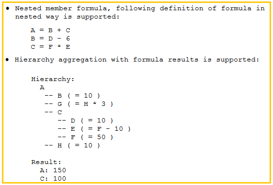 Anidamiento de fórmulas en miembros de dimensión y Agregación de jerarquías de miembros de dimensión con fórmulas, dos características posiblescon HANABPC 800 SP05 y HANABPC 801 SP02