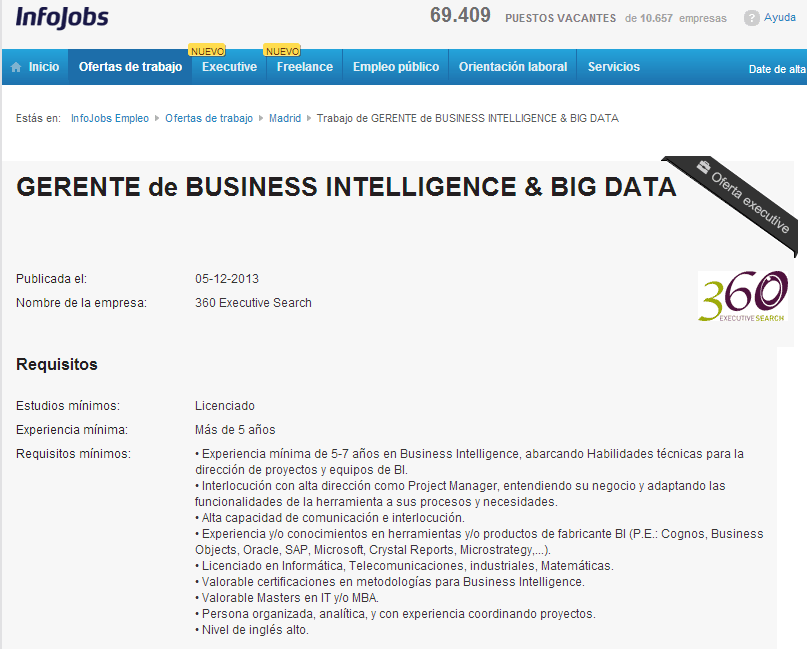 Oferta de trabajo de Big Data sin fundamento