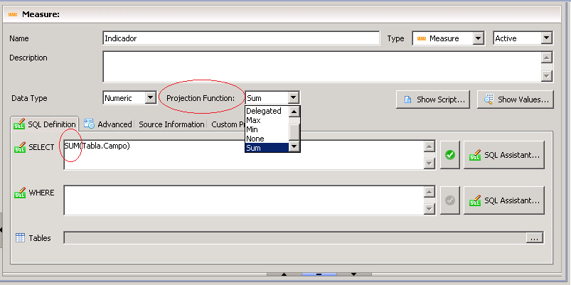 Utilidad de las «funciones de proyección» de IDT (SAP BusinessObjects BI)