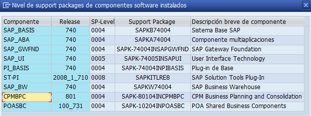 Datos de un sistema SAP BPC 10.0 NW sobre SAP NW 7.40