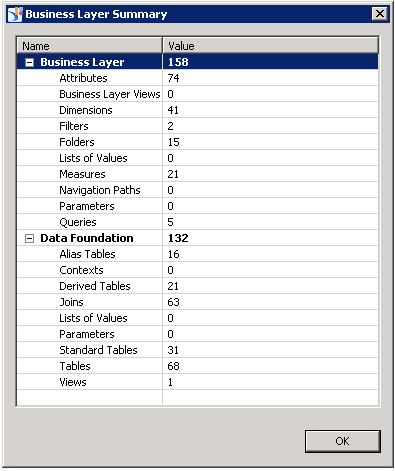 Recuento de objetos de un universo UNX en IDT a través del Business Layer (BI4)