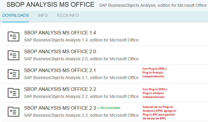 Analysis for Office versiones disponibles